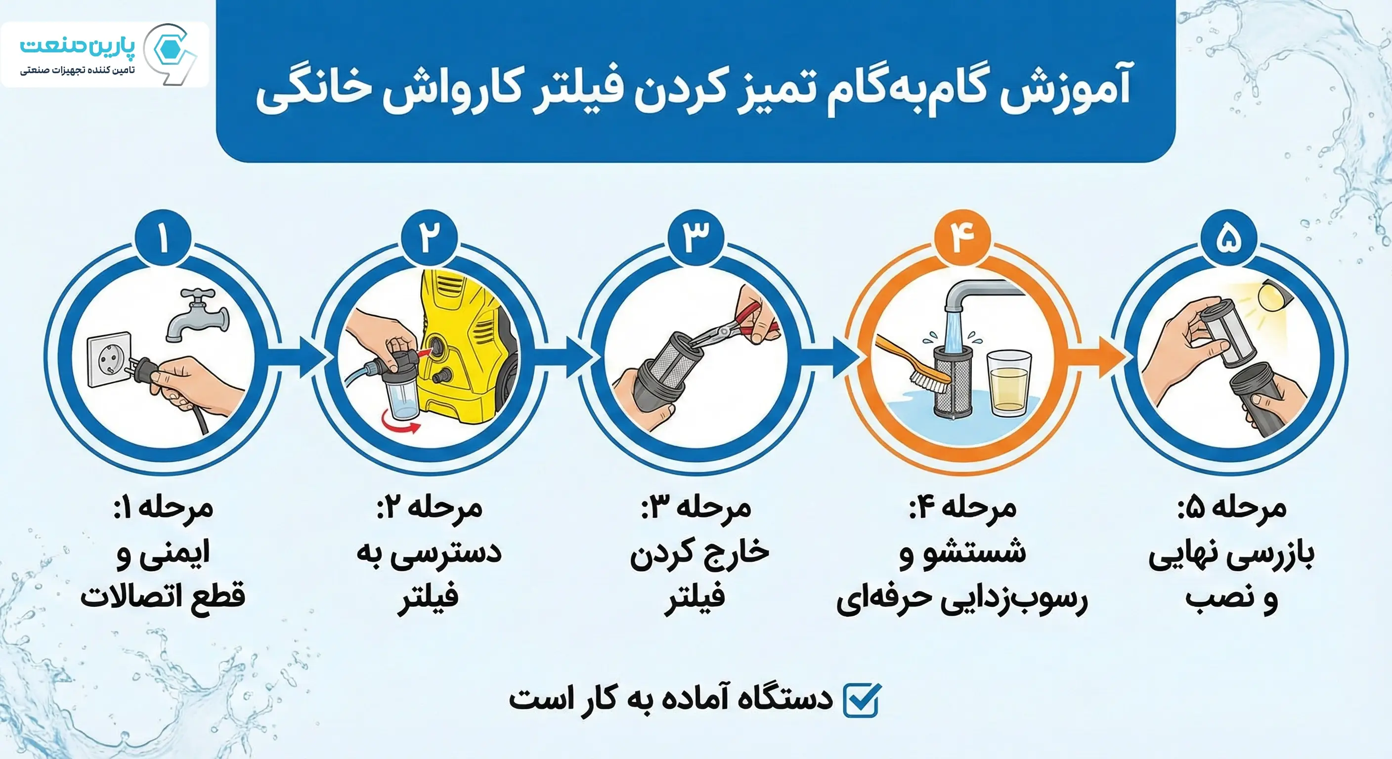 آموزش گامبهگام تمیز کردن فیلتر کارواش خانگی