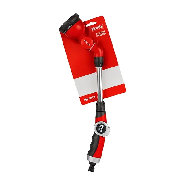آبپاش تلسکوپی 9 حالته رونیکس مدل RH4013 یک ابزار کاربردی و حرفهای برای آبیاری و شستشو در محیطهای خانگی، باغبانی و نیمهصنعتی است و از سری تجهیزات خانگی و صنعتی می باشد. این آبپاش با داشتن ۹ حالت مختلف پاشش، امکان انتخاب نوع خروجی آب را متناسب با نیاز شما فراهم میکند و باعث میشود برای آبیاری گیاهان، شستشوی خودرو، نظافت حیاط و پاکسازی سطوح مختلف گزینهای بسیار مناسب باشد. طراحی تلسکوپی این مدل باعث میشود کنترل زاویه و جهت پاشش آب راحتتر باشد و کاربر بتواند تسلط بیشتری در استفاده داشته باشد. همچنین سایز استاندارد اتصال 3/4 اینچ این امکان را ایجاد میکند که این آبپاش با اکثر شلنگهای باغبانی بدون نشتی نصب شود.