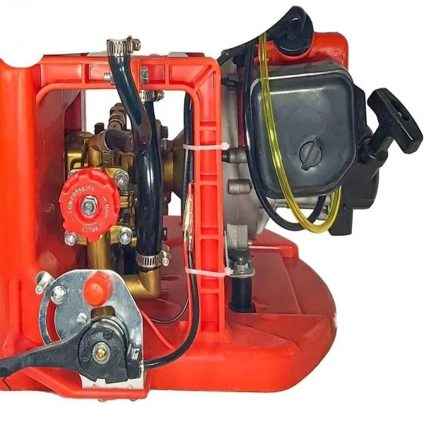مخزن ۲۵ لیتری پلیاتیلنی مقاوم این سمپاش، امکان نگهداری حجم قابل توجهی از محلول سم را فراهم میکند و مقاومت بالای آن در برابر نور خورشید، سموم و ضربه، طول عمر دستگاه را تضمین مینماید. ارتفاع پاشش بین ۶ تا ۸ متر باعث میشود درختان بلند، مرکبات و صیفیجات بهراحتی سمپاشی شوند و پوشش یکنواختی در مناطق دورافتاده و سخترس باغ ایجاد گردد. وزن حدود ۱۲ کیلوگرم و ابعاد جمع و جور، حمل و جابهجایی سمپاش را آسان کرده و کاربری طولانیمدت را بدون خستگی امکانپذیر میسازد. امکان انتخاب بین پاشش مهپاش یا تیزپاش، پوشش یکنواخت و دقیق مناطق مختلف باغ و عملکرد مطمئن موتور، این سمپاش را به ابزاری کارآمد و اقتصادی برای کشاورزان حرفهای تبدیل کرده است.
