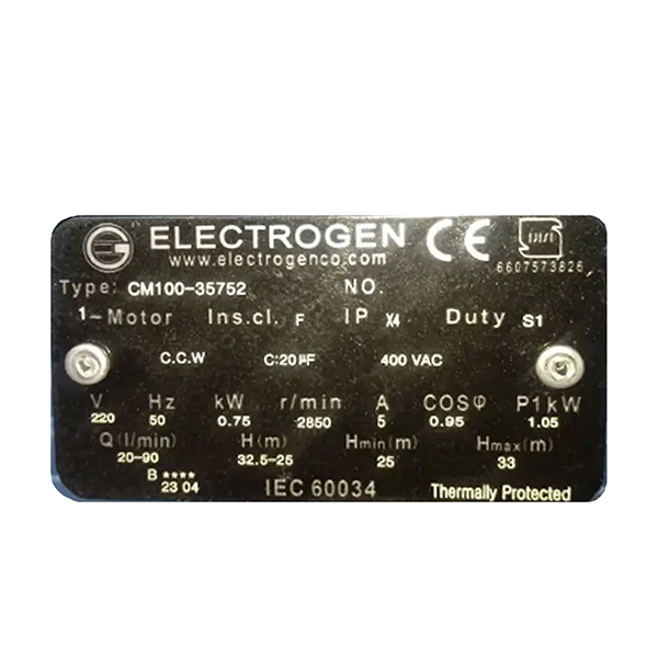 مشخصات فنی پمپ آب الکتروژن CM100