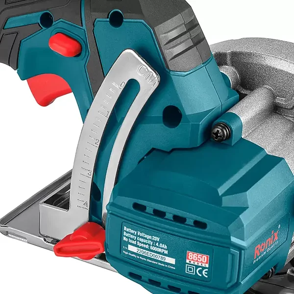 اره گردبر شارژی رونیکس مدل 8650 یک اره دیسکی سبک و قابل حمل برای انواع برشهای مستقیم، اریب، متقاطع و زاویهدار است و از سری تجهیزات خانگی و صنعتی می باشد. شارژی بودن دستگاه باعث میشود بدون محدودیت کابل و بدون نیاز به برق شهری، در محیطهای مختلف مثل کارگاه، محل نصب یا پروژههای ساختمانی سبک بهراحتی از آن استفاده کنید.