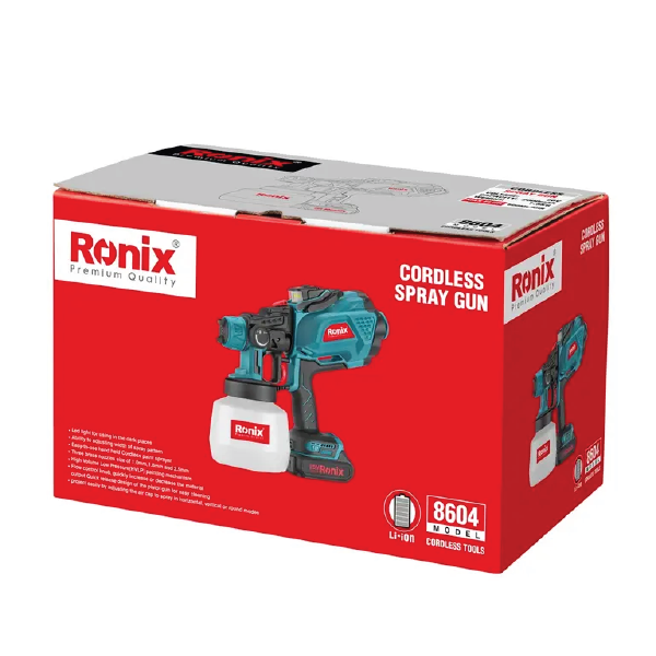 پیستوله شارژی رنگ پاش رونیکس 20 ولت مدل 8604 از سری تجهیرات خانگی و صنعتی می باشد . یک ابزار کاربردی و مدرن برای اجرای یکنواخت رنگ با سرعت و دقت بالا است که با طراحی شارژی و ارگونومیک، آزادی عمل کامل را در محیطهای مختلف کاری فراهم میکند.این پیستوله برای رنگآمیزی سطوح چوبی در نجاری و دکوراسیون داخلی کاربرد دارد؛ در رنگکاری قطعات فلزی و سازههای سبک مورد استفاده قرار میگیرد؛ برای پروژههای ساختمانی و نوسازی جهت رنگآمیزی دیوارها و سطوح مختلف مناسب است؛ در تعمیرگاهها و کارگاهها برای رنگکاری قطعات و تجهیزات استفاده میشود؛ برای رنگآمیزی در فضاهای بدون دسترسی به برق انتخابی ایدهآل است؛ و در پروژههای خانگی و نیمهحرفهای دقت و سرعت کار را افزایش میدهد.این پیستوله به باتری 20 ولت رونیکس مجهز است که قدرت و عملکرد پایدار را تضمین میکند؛ طراحی شارژی امکان کار آسان و بدون محدودیت کابل را فراهم میسازد؛ سیستم پاشش یکنواخت کیفیت نهایی رنگ را بهبود میدهد؛ بدنه سبک و ارگونومیک خستگی کاربر را در استفاده طولانی کاهش میدهد؛ مخزن مناسب رنگ نیاز به شارژ مداوم را کم میکند؛ و کیفیت ساخت بالای رونیکس دوام و طول عمر دستگاه را در شرایط کاری مختلف تضمین مینماید.