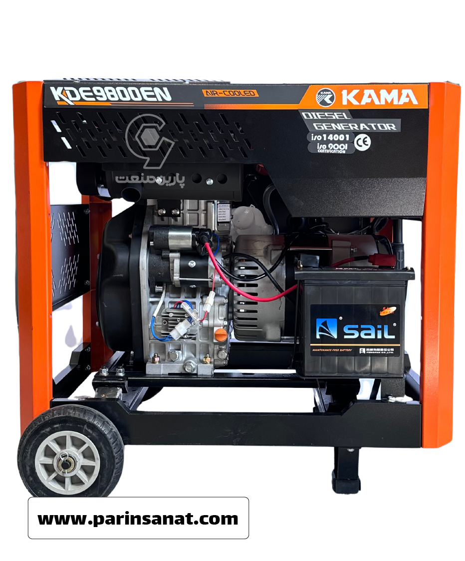موتور برق دیزلی کاما مدل KDE9800EN یکی از پرقدرتترین ژنراتورهای دیزلی در رده خانگی و صنعتی است که با توان نامی ۸ کیلووات و حداکثر توان ۸.۵ کیلووات، برق مطمئن و پایداری را برای انواع مصارف فراهم میکند. این دستگاه از موتور چهارزمانهی KM1100F با حجم ۶۹۱ سیسی بهره میبرد که عملکردی قدرتمند و ماندگار دارد. سیستم رگولاتور ولتاژ اتوماتیک (AVR) موجب تثبیت ولتاژ خروجی و محافظت از تجهیزات برقی میشود. با داشتن استارت برقی و طراحی مجهز به چرخ و دسته، جابجایی دستگاه بسیار آسان است. مخزن ۲۵ لیتری سوخت امکان کارکرد طولانی و بدون وقفه را فراهم میکند. بدنه مقاوم، ساختار فشرده و وزن متعادل، آن را برای استفاده در شرایط مختلف ایدهآل کرده است. این موتور برق با صدای ۹۵ دسیبل و سیستم خنککاری هوا، عملکردی قابل اعتماد و ایمن ارائه میدهد. موتور برق کاما KDE9800EN انتخابی مطمئن برای تأمین برق پایدار در خانه، مزرعه و محیطهای کاری است.