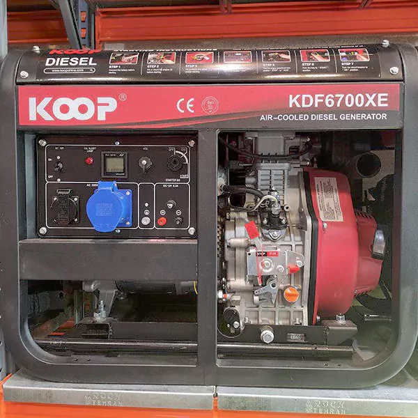 موتور برق کوپ مدل KDF6700XE با توان ۴.۵ کیلووات از سری تجهیرات تامین برق می باشد و یک ژنراتور دیزلی حرفهای برای مصارف نیمهصنعتی و تجاری است. این موتور برق جهت راهاندازی وسایل برقی با توان مصرفی متوسط مانند یخچال، کولرآبی، تلویزیون و چند روشنایی به کار میرود. موتور برق دیزلی کوپ ۴.۵ کیلووات مدل KDF6700XE دارای تنظیمکننده ولتاژ AVR اتوماتیک است که جریان ثابتی جهت اتصال به دستگاههای حساس برآورد مینماید. همچنین دارای سیستم محافظ روغن است که به هنگام کمبود روغن، از روشن شدن دستگاه جلوگیری میکند.
