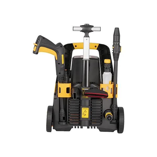 این کارواش خانگی به موتور ذغالی مجهز شده که با توان 1600 وات عملکرد قدرتمندی در شستوشو ارائه میدهد و در کنار آن سیستم Auto Stop به کاهش مصرف انرژی و افزایش ایمنی کمک میکند. سیستم محافظتی افزایش دمای موتور نیز از آسیب به دستگاه در استفاده طولانی جلوگیری میکند و باعث دوام بالاتر میشود. طراحی ارگونومیک با چرخ و دسته تلسکوپی حمل و نقل را آسان کرده و شلنگ فشارقوی 5 متری و کابل برق 5 متری آزادی عمل مناسبی در محیط ایجاد میکنند. وجود مخزن کفپاش، لانس و نازلهای کاربردی برای شستوشوی دقیقتر و متعلقات جاروبرقی مانند لوله خرطومی، گوشهگیر و مبلپاکن باعث میشود دستگاه برای کاربردهای متنوع و حرفهای کاملاً مناسب باشد.