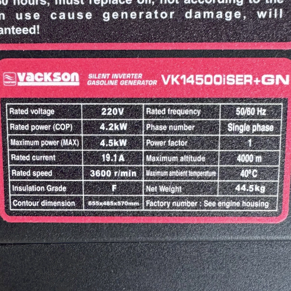 مشخصات فنی موتور برق دوگانهسوز واکسون مدل VK14500iSERGN