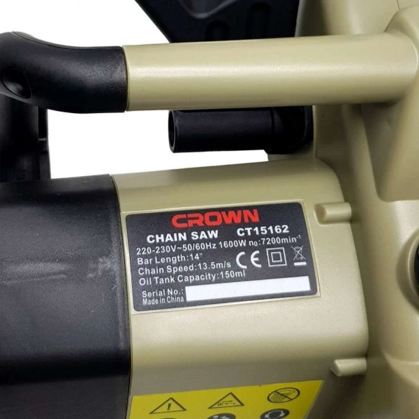 اره درخت بر برقی کرون مدل CT15162 با توان ۱۶۰۰ وات و طول زنجیر ۳۵ سانتیمتر، دستگاهی کارآمد و ایمن برای برش انواع چوب است. این دستگاه با سرعت حرکت زنجیر ۱۳.۵ متر بر ثانیه و دور در حالت آزاد ۷۲۰۰ دور در دقیقه، قدرت کافی برای برش سریع و دقیق قطعات چوبی را فراهم میکند. ظرفیت مخزن روغن ۱۵۰ میلیلیتر، روانکاری مداوم زنجیر و عملکرد پایدار دستگاه را تضمین میکند و وزن خالص ۴.۹ کیلوگرم، تعادل مناسب و استفاده راحت حتی در کار طولانی را ممکن میسازد.