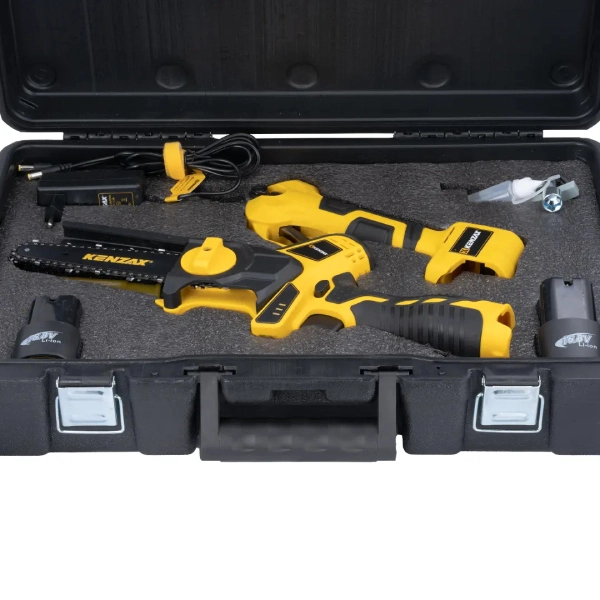 ست ترکیبی اره زنجیری و قیچی شارژی کنزاکس مدل 8740 یک مجموعه حرفهای و کاربردی برای انجام انواع عملیات برش در حوزه تجهیزات کشاورزی و باغبانی به شمار میرود. این ست برای هرس شاخهها و درختچهها، برش شاخههای ضخیم و نیمهضخیم، نگهداری و فرمدهی درختان باغی، استفاده در باغها و فضاهای سبز، پروژههای باغبانی خانگی و نیمهحرفهای و همچنین کاربرد توسط باغداران و کاربران حرفهای طراحی شده است. ترکیب قیچی و اره زنجیری شارژی در یک مجموعه، سرعت کار و تنوع عملکرد را بهطور چشمگیری افزایش میدهد.