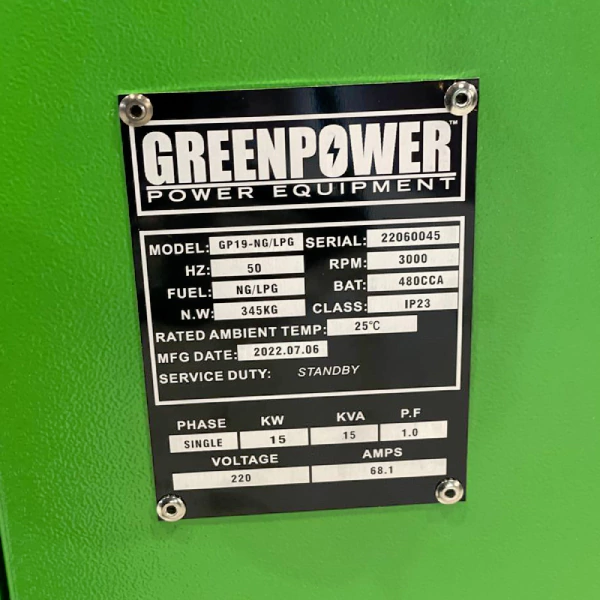 موتور برق گرین پاور ۱۵ کاوا GP19NG/LPG تک فاز