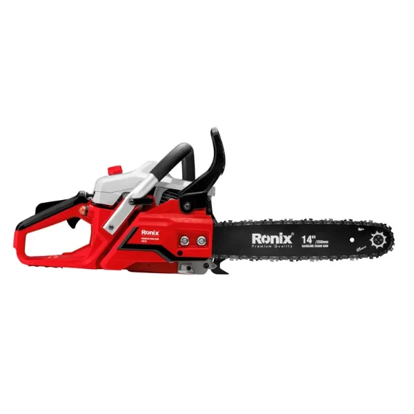 سیستم احتراق پیشرفته C.D.I در این اره بنزینی، موجب بهبود راندمان و عملکرد نرم موتور میشود. کاربراتور دیافراگمی نیز نقش مهمی در ترکیب دقیق سوخت و هوا برای احتراق بهینه دارد. مخزن سوخت دستگاه ظرفیت ۳۱۰ میلیلیتر و مخزن روغن ۲۲۰ میلیلیتر دارد. سیستم استارت سریع و پمپ ثانویه حبابی، روشنشدن راحتتر موتور را حتی در شرایط سرد فراهم میکند. سیستم کلاچ با طراحی جدید، انتقال نیرو را دقیقتر و کارایی دستگاه را افزایش میدهد. ترمز اضطراری با قطع اتصال زنجیر از بازگشت آن جلوگیری کرده و ایمنی کاربر را تضمین میکند. سیستم ضدلرزش دوبل نیز با کاهش ارتعاشات، استفاده طولانیمدت از دستگاه را آسانتر و خستگی را کمتر میکند. طول ساطور ۳۵ سانتیمتر با دماغه چرخدندهای و زنجیر طراحیشده توسط رونیکس عرضه میشود. طراحی خاص اگزوز موجب کاهش مصرف سوخت و انتشار دود میشود. در نهایت، این محصول همراه با زنجیر، ساطور، بطری ترکیب روغن و بنزین، روکش ساطور و کیف ابزار شامل آچار شمع، پیچگوشتی، سوهان و متعلقات دیگر ارائه میشود.