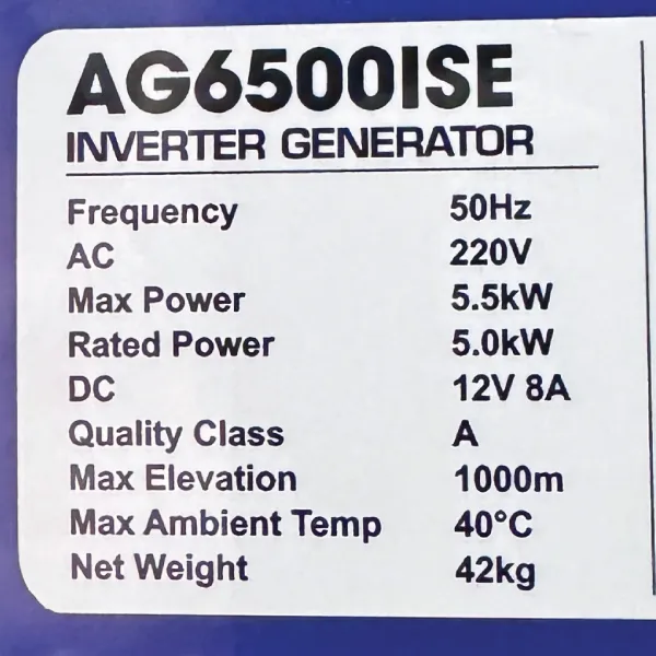 مشخصات فنی موتور برق بنزینی آگرو مدل AG6500ISER
