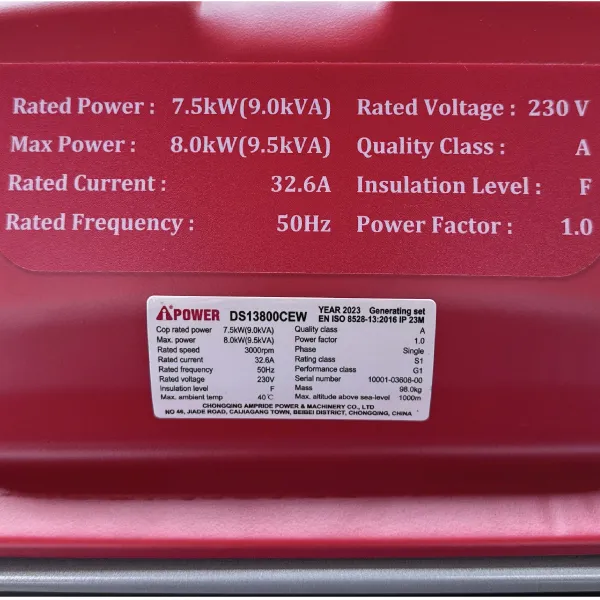 مشخصات فنی موتور برق بنزینی AiPOWER مدل DS13800CEW