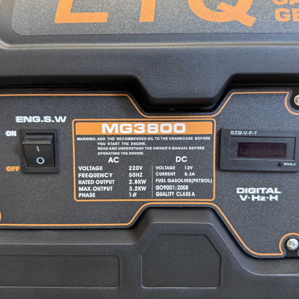مشخصات فنی موتوربرق بنزینی ETQ مدل MG3800