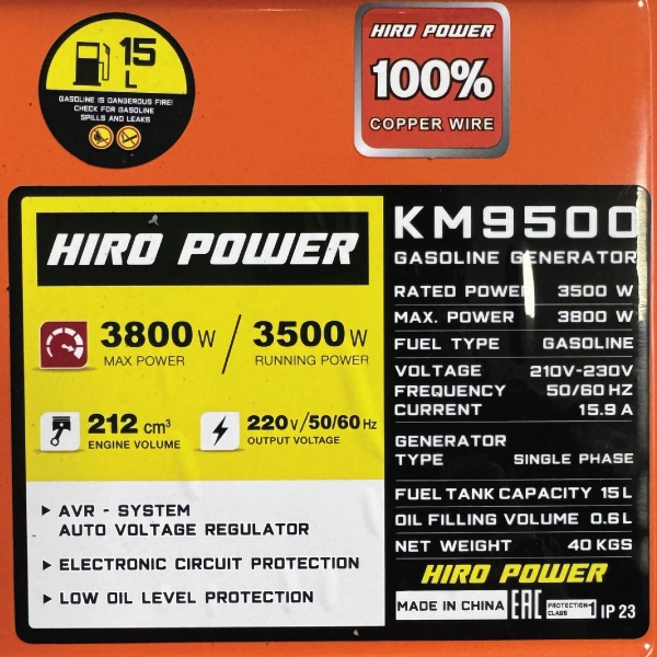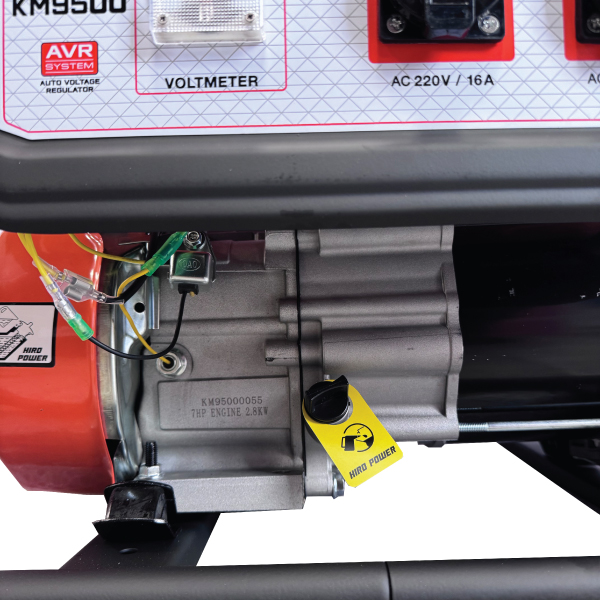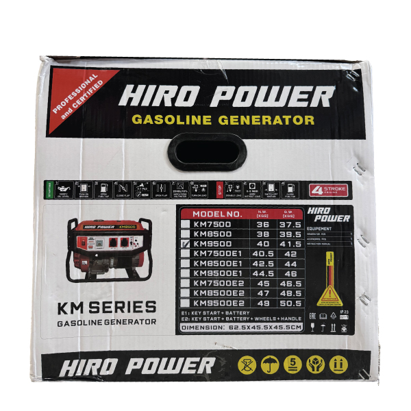 موتور برق بنزینی هیرو پاور مدل KM9500 یک ژنراتور قدرتمند و قابل اعتماد با توان نامی ۳.۵ کیلووات و توان حداکثری ۳.۸ کیلووات است که برای کاربردهای خانگی، اداری و پروژههای سبک صنعتی طراحی شده است. این دستگاه با موتور چهارزمانه تکسیلندر مدل VK225 به حجم ۲۲۵ سیسی و قدرت ۷.۵ اسب بخار، جریان پایدار ۱۵.۹ آمپر و ولتاژ ۲۲۰ ولت تکفاز را فراهم میکند. فرکانس ۵۰–۶۰ هرتز و سیستم جرقهزنی TCI، عملکرد مطمئن و طول عمر بالای دستگاه را تضمین میکنند.