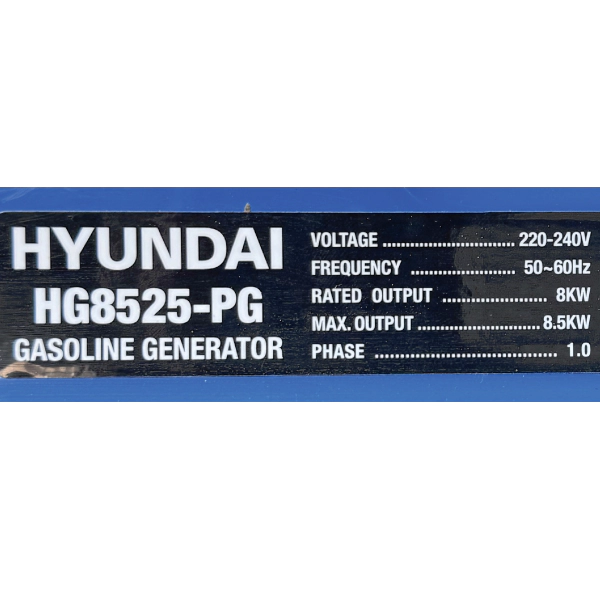 مشخصات فنی موتور برق بنزینی هیوندای ۸.۵ کیلووات مدل HG8525PG
