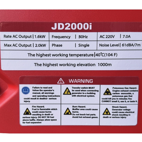 از ویژگیهای مهم این مدل میتوان به موتور ۴ زمانه تکسیلندر با حجم ۷۹ سیسی اشاره کرد که عملکردی پایدار، اقتصادی و کمصدا ارائه میدهد. سیستم اینورتری سایلنت جریان خروجی کاملاً یکنواخت و ایمن برای دستگاههای حساس الکترونیکی فراهم میکند. ظرفیت سوخت ۴ لیتری و مصرف پایین، امکان استفاده طولانیتر با یک بار سوختگیری را فراهم میسازد. همچنین روشنشدن هندلی، وزن سبک ۲۱ کیلوگرمی و ابعاد کوچک آن، JD2000i را به گزینهای ایدهآل برای مصارف تفریحی، خانگی و شرایط اضطراری تبدیل کرده است.