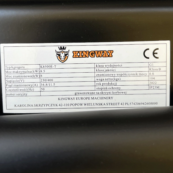 مشخصات فنی موتور برق بنزینی کینگ وی ۸.۵ کیلووات مدل K8500ET