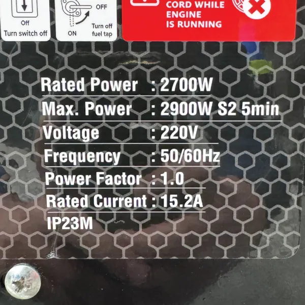 این موتور برق از موتور تک سیلندر ۴ زمانه مدل PT210 با قدرت ۷ اسب بخار و حجم ۲۱۲ سیسی بهره میبرد. حداکثر توان ۲.۹ کیلووات و توان نامی ۲.۷ کیلووات، امکان راهاندازی و پشتیبانی از وسایل برقی پرمصرف خانگی را فراهم میکند. سیستم خنککننده هوا و ظرفیت روغن ۰.۶ لیتر، دوام و عملکرد پایدار دستگاه را تضمین مینماید. با صدای ۹۶ دسیبل و وزن سبک ۳۰ کیلوگرمی، حمل و استفاده از آن سادهتر است. وجود نمایشگر دیجیتال نیز کاربر را در پایش وضعیت عملکرد موتور برق یاری میکند و کاربری آسانتری به همراه دارد.