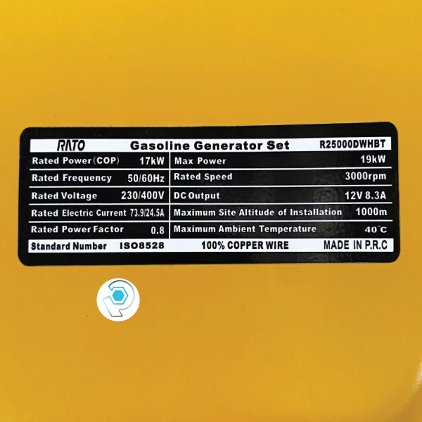 مشخصات فنی موتور برق بنزینی راتو ۱۹ کیلووات مدل R25000DWHBT