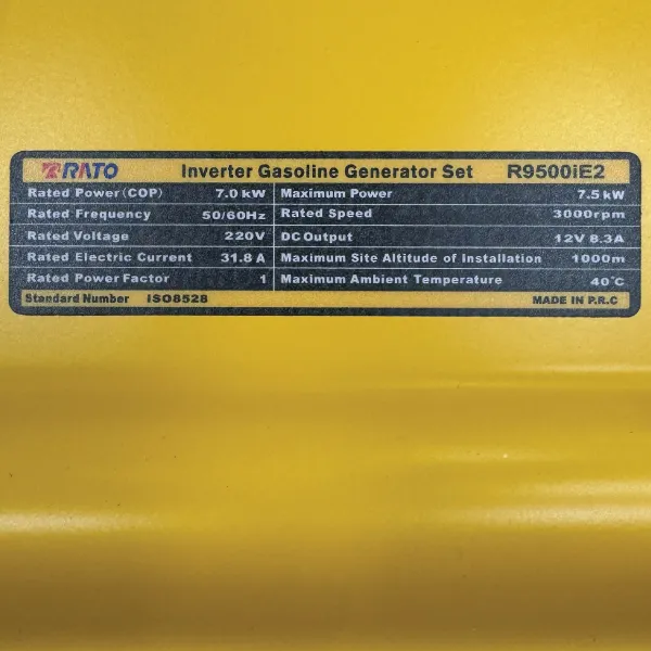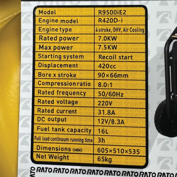 مشخصات فنی موتور برق بنزینی راتو مدل R9500iE2