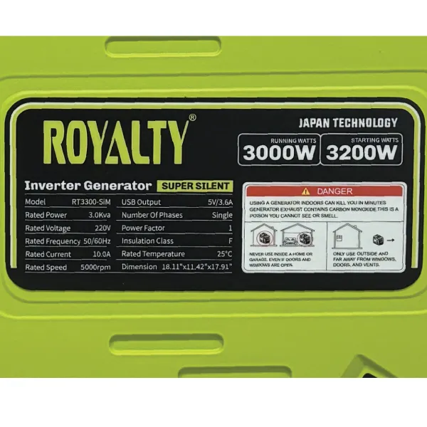 موتور برق بنزینی رویالتی 2.5 کیلووات مدل RT3300-SiM اینورتری سایلنت با تکنولوژی ژاپن
