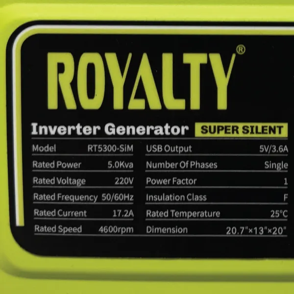 موتور برق بنزینی رویالتی 4 کیلووات مدل RT5300-SiM اینورتری سایلنت با تکنولوژی ژاپن