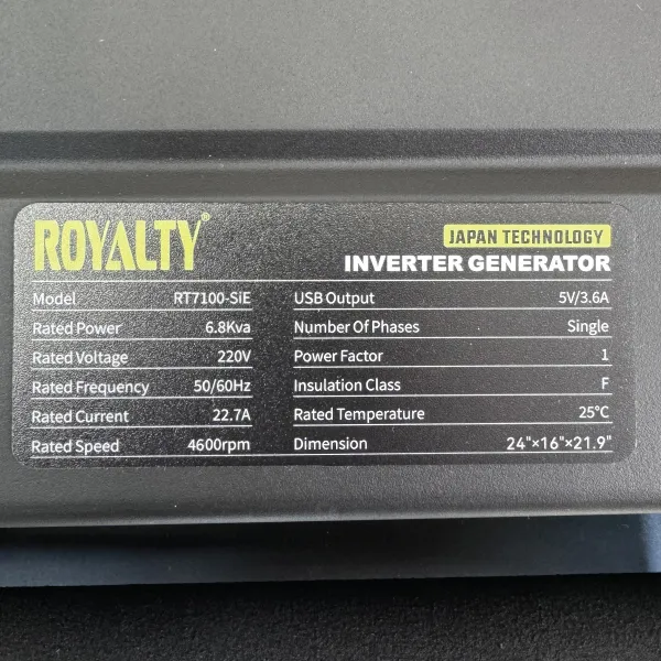 موتور برق بنزینی رویالتی 5.5 کیلووات مدل RT7100-SiE اینورتری سایلنت با تکنولوژی ژاپن