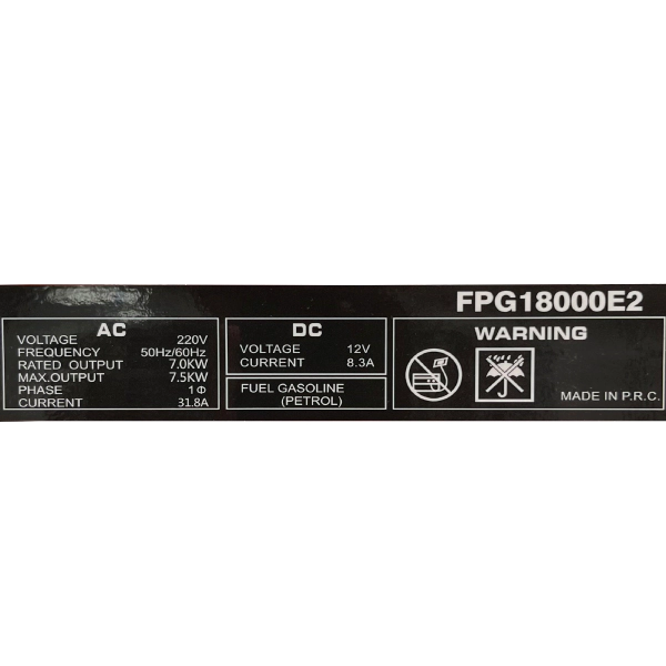 مشخصات فنی موتور برق بنزینی واکسون ۷.۵ کیلووات مدل FPG18000E2