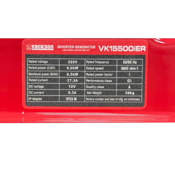 مشخصات فنی موتور برق بنزینی واکسون ۶.۵ کیلووات مدل VK15500IER