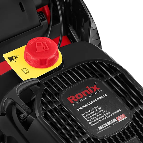 چمن زن بنزینی خودران رونیکس مدل 4451 یک ابزار قدرتمند و حرفهای برای نگهداری و مرتبکردن چمن باغها و فضاهای سبز بزرگ است و از سری تجهیزات کشاورزی و باغبانی می باشد. این چمن زن به موتور تکسیلندر، چهارزمانه و هواخنک با توان ۶.۵ اسب بخار مجهز شده و عملکردی روان و قدرتمند ارائه میدهد. حجم موتور ۱۹۶ سیسی و استفاده از سوخت بنزینی باعث شده این چمنزن بدون وابستگی به برق، آزادی عمل بیشتری در محیطهای مختلف داشته باشد. ویژگی خودران بودن این مدل، کار با دستگاه را بسیار سادهتر کرده و فشار کمتری به کاربر وارد میکند؛ بهخصوص در زمینهای بزرگ یا شیبدار. سیستم جرقهزنی القایی، استارت هندلی و کاربراتور شناوری، باعث روشنشدن سریع و عملکرد پایدار موتور میشود. دسته دستگاه دارای ۳ موقعیت تنظیم طول و امکان تنظیم زاویه از ۲۳ تا ۴۰ درجه است تا کاربر در وضعیت بدنی راحتتری کار کند. همچنین تیغه فولادی 40Mn مقاوم در برابر ضربه و زنگزدگی، طول عمر بالا و کیفیت برش مناسبی را تضمین میکند.