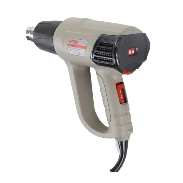 این سشوار صنعتی به المنت صنعتی تقویتشده مجهز شده که امکان تولید حرارت پایدار و یکنواخت را فراهم میکند. قابلیت تنظیم درجه حرارت و سرعت باد در شش حالت مختلف به کاربر اجازه میدهد تا بسته به نوع کار، کنترل کاملی روی عملکرد دستگاه داشته باشد. این ویژگی، دقت انجام عملیات را افزایش داده و از آسیب دیدن سطوح حساس جلوگیری میکند. دامنه حرارتی گسترده تا ۶۰۰ درجه سانتیگراد و جریان هوای متغیر تا ۵۰۰ لیتر در دقیقه، این مدل را برای کاربردهای متنوعی مانند وکیوم انواع بستهبندیهای حرارتی، خشککردن سریع رطوبت سطوح، چسباندن یا جداسازی برچسبهای حرارتی و بسیاری از امور فنی دیگر کاملاً مناسب کرده است. از نظر ایمنی، کرون در این مدل از سیستم حفاظت در برابر اضافهبار حرارتی استفاده کرده است؛ بهطوریکه در صورت افزایش بیش از حد دما، المنت بهصورت خودکار خاموش میشود و از آسیب به دستگاه جلوگیری خواهد شد. طراحی ارگونومیک دسته D شکل نیز باعث میشود کنترل دستگاه حتی در استفادههای طولانیمدت آسان بوده و فشار کمتری به دست کاربر وارد شود. وزن مناسب ۰.۸ کیلوگرمی، در کنار اقلام همراه کاربردی مانند سری اضافه و دفترچه راهنما، این دستگاه را به یکی از تجهیزات خانگی و صنعتی کارآمد، ایمن و مقرونبهصرفه برای مصارف صنعتی و کارگاهی تبدیل کرده است.