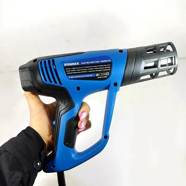 سشوار صنعتی برقی ویوارکس مدل VR2006-HG یک ابزار قدرتمند و چندمنظوره برای تولید هوای داغ با دمای بالا در صنایع مختلف و از سری تجهیزات خانگی و صنعتی است. این دستگاه با موتور 2000 واتی، حرارت را بهصورت یکنواخت و ثابت تولید میکند و برای انجام کارهای مداوم و طولانی کاملاً مناسب است. بازه تنظیم حرارت از 60 تا 600 درجه سانتیگراد به شما اجازه میدهد شدت گرما را دقیقاً متناسب با نوع کار تنظیم کنید؛ از گرمایش ملایم برای خشککردن تا حرارتدهی سنگین برای رنگزدایی یا جوش پلاستیک.