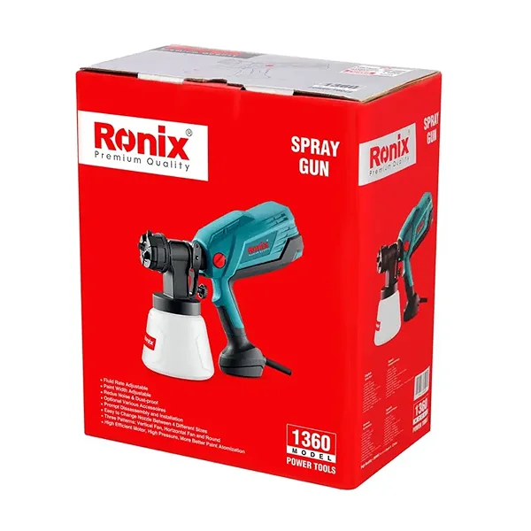 پیستوله برقی HVLP رونیکس ۶۰۰ وات مخزن ۱۰۰۰ میلیلیتر مدل 1360