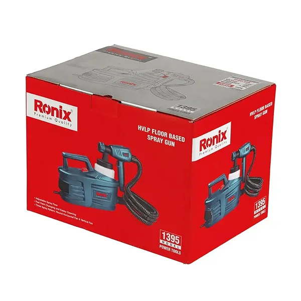 پیستوله برقی رونیکس مدل 1395 یک ابزار حرفهای برای رنگآمیزی صنعتی است که با بهرهگیری از سیستم HVLP حجم بالا، فشار کم، رنگ را بهصورت یکنواخت و با حداقل هدررفت روی سطح پخش میکند و از سری تجهیزات خانگی و صنعتی می باشد. این دستگاه با موتور قدرتمند ۹۵۰ وات و طراحی پایهدار، عملکردی پایدار و قابلاعتماد در پروژههای سنگین رنگکاری ارائه میدهد. در سیستم HVLP، حجم رنگ زیاد و فشار هوا کم است؛ به همین دلیل ذرات رنگی بیشتری روی سطح باقی میمانند و نتیجه کار، پوششی ضخیمتر و با کیفیت بالاتر خواهد بود. پیچ تنظیم جریان این پیستوله، امکان افزایش یا کاهش سریع خروجی رنگ را فراهم میکند تا پاشش متناسب با نوع رنگ و سطح موردنظر تنظیم شود.