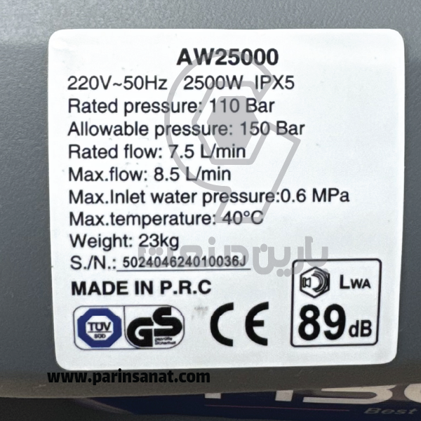 از نظر ویژگیها، توان 2500 وات و حداکثر فشار 150 بار، قدرت لازم برای شستوشوی حرفهای را فراهم میکند. دبی خروجی 8.5 لیتر در دقیقه، سرعت تمیزکاری را بالا میبرد و برای شستوشوی سطوح بزرگ بسیار مناسب است. تکفاز بودن دستگاه، استفاده از آن را در بسیاری از محیطها سادهتر میکند و تحمل دمای آب تا 40 درجه سانتیگراد نیز امکان استفاده در شرایط مختلف را فراهم میسازد.