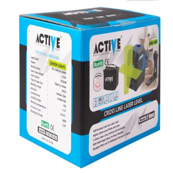 تراز لیزری دو خط سبز اکتیو مدل AC50282G یکی از ابزار دقیق و اندازهگیری می باشد که برای ترسیم خطوط افقی و عمودی بهصورت همزمان طراحی شده است. این دستگاه با برد داخلی تا 10 متر و دقت ±0.2 میلیمتر در 5 متر، گزینهای ایدهآل برای استفاده در محیطهای داخلی و خارجی محسوب میشود.