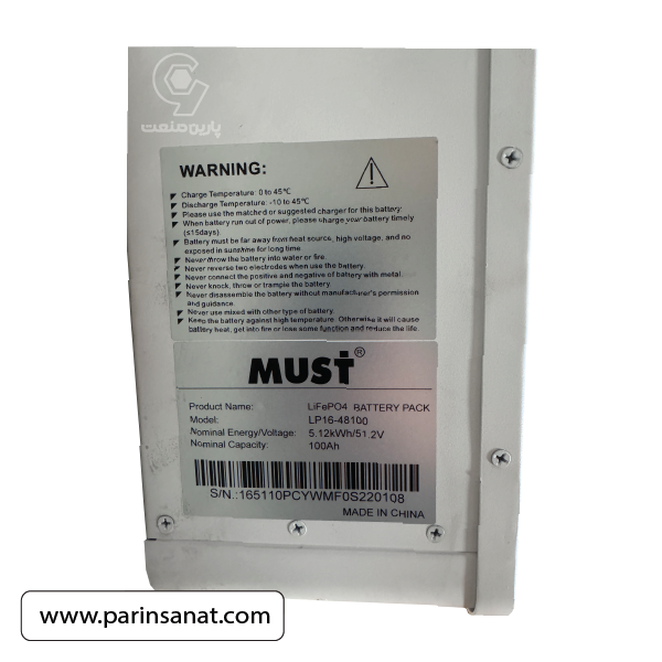 باتری لیتیوم MUST مدل LP16-48100 از سری تجهیزات تامین برق با انرژی نامی 5.12 کیلوواتساعت یکی از گزینههای حرفهای و بادوام برای ذخیرهسازی برق در سیستمهای خورشیدی، UPS و تجهیزات پشتیبان محسوب میشود. این باتری با ولتاژ نامی 51.2 ولت و ظرفیت 100 آمپرساعت، توانایی تأمین انرژی پایدار برای مصارف خانگی و صنعتی سبک را دارد. پشتیبانی از سیستمهای Parallel باعث افزایش ظرفیت و توان کلی مجموعه باتریها در پروژههای بزرگ میشود. فناوری LiFePO₄ استفادهشده در آن، ایمنی بالا، عمر طولانی و مقاومت حرارتی کمنظیری را تضمین میکند. محدوده عملکرد دمایی گسترده (از 10- تا 45+ درجه سانتیگراد) و رطوبت قابلتحمل تا 95 درصد، کارکرد مطمئن آن را در شرایط محیطی مختلف تضمین میسازد. همچنین وجود قابلیتهای هوشمندی مانند WiFi و بلوتوث امکان نظارت و کنترل لحظهای وضعیت باتری را برای کاربر فراهم میسازد.