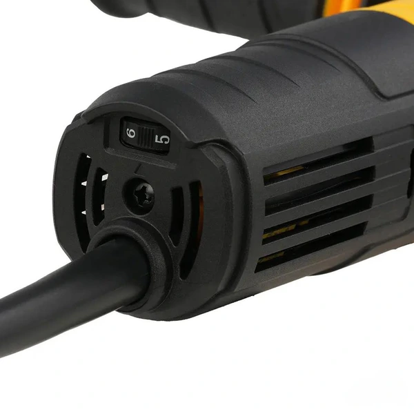 موتور ۹۰۰ واتی با سیستم دیمر الکترونیکی، امکان تنظیم سرعت از آهسته تا حداکثر را میدهد. سیستم کنترل سرعت پیشرفته، حفظ دور ثابت موتور تحت بار را تضمین میکند. حفاظ الکترونیکی از موتور، دستگاه را در برابر اضافه بار و افت ولتاژ محافظت مینماید. طراحی خوشدست با دسته رابر لاستیکی، کنترل دقیقتر و راحتی بیشتر را ارائه میدهد. کلید دیمردار با امکان قفل سرعت، راحتی کار در عملیات طولانیمدت را فراهم میسازد.
