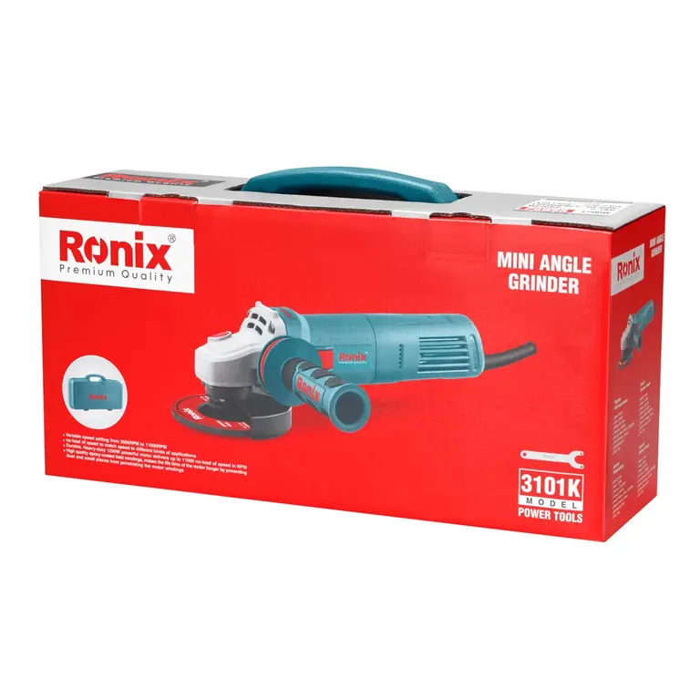 مینی فرز برقی رونیکس 115 میلیمتری 1200 وات مدل 3101K دیمردار صنعتی همراه با کیف