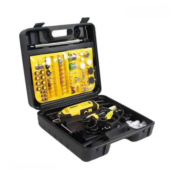 موتور ۱۸۰ واتی، ۳۳٪ قدرت بیشتر نسبت به مدل ۱۳۵ واتی برای کار با مواد سختتر فراهم میکند. مجموعه ۹۷ پارچه شامل پرکاربردترین ابزارها برای انواع کارهای دقیق است. سیستم خنککاری بهبودیافته، امکان کار طولانیتر با قدرت بالاتر را تضمین مینماید. سرعت متغیر، امکان تنظیم دقیق برای هر نوع ماده و کاربرد را فراهم میآورد. کیف حمل مناسب، سازماندهی و حمل آسان تجهیزات را ممکن میسازد.