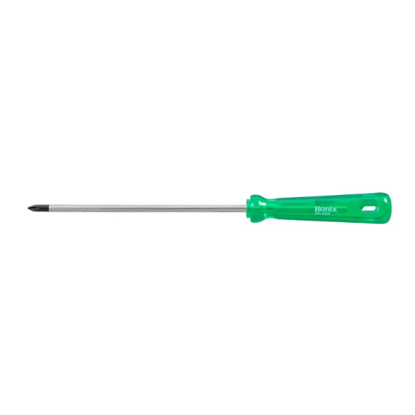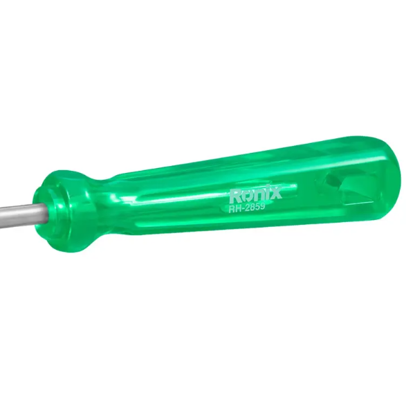 پیچ گوشتی چهارسو رونیکس مدل RH2859 با ابعاد ۱۵۰×۵ میلیمتر و دسته کریستالی، بلندترین عضو خانواده پیچ گوشتیهای ساده کریستالی رونیکس درمیان ابزارآلات دستی است. این پیچ گوشتی با طول میله استثنایی، برای کارهای تخصصی که نیاز به دسترسی به عمقهای زیاد دارند، طراحی شده است.میله فولاد آلیاژی با کیفیت عالی، علیرغم طول قابل توجه ۱۵۰ میلیمتری، استحکام و مقاومت مناسبی در برابر خمش را حفظ میکند. این طول فوقالعاده، امکان دسترسی به پیچهایی را فراهم میآورد که با ابزارهای معمولی غیرممکن است. نوک ۵ میلیمتری، همچنان برای پیچهای متوسط مناسب باقی میماند.