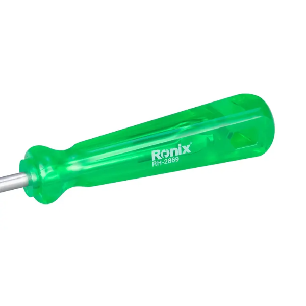 پیچ گوشتی چهارسو رونیکس مدل RH-2869 با ابعاد ۱۵۰×۶ میلیمتر، یکی از ابزارهای تخصصی و پرکاربرد درمیان ابزارآلات دستی در جعبه ابزار هر تکنسین حرفهای است. میله فولاد آلیاژی با کیفیت عالی، علیرغم طول ۱۵۰ میلیمتری، استحکام مناسبی در برابر خمش را حفظ میکند و امکان دسترسی به پیچهای عمیق را فراهم میآورد.