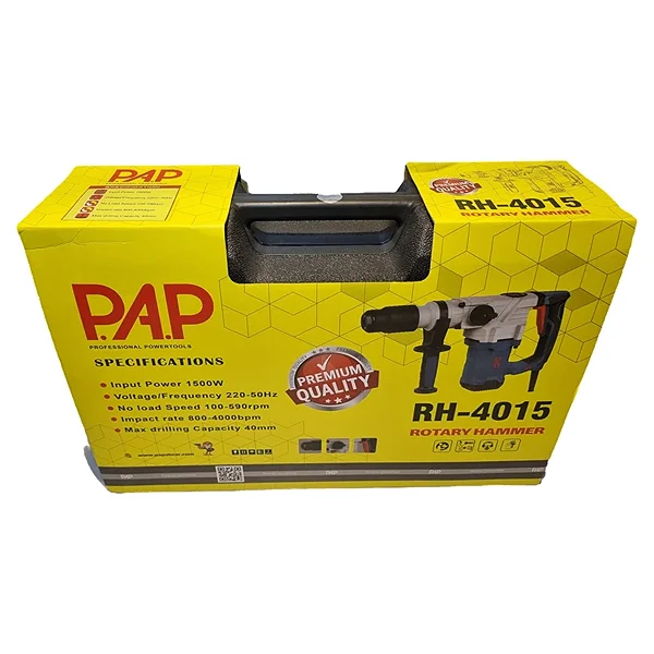 دریل بتنکن چهارکاره PAP مدل RH4015 یک ابزار قدرتمند برای سوراخکاری و تخریب سطوح بتنی و مصالح سخت ساختمانی است و از سری تجهیزات خانگی و صنعتی می باشد که برای پروژههای صنعتی و ساختمانی گزینهای قابلاعتماد محسوب میشود. این دستگاه با عملکرد چهارکاره، برای انجام طیف وسیعی از کارها از سوراخکاری معمولی تا سوراخکاری چکشی و تخریب قابل استفاده است. ظرفیت سوراخکاری ۴۰ میلیمتری در بتن، آن را برای کارهای سنگین و حرفهای مناسب میکند. همچنین وجود دیمر، امکان کنترل بهتر روی کار و متناسبسازی سرعت با نوع عملیات را فراهم میسازد.