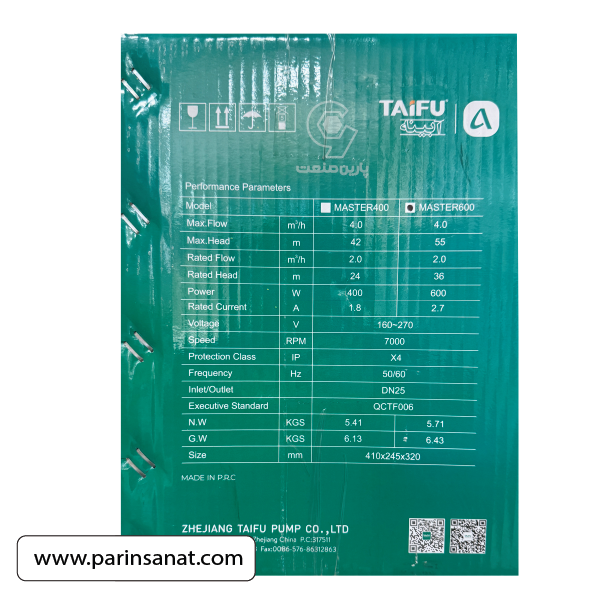 پمپ سایلنت تایفو ۶۰۰ وات مدل MASTER600 از سری پمپ و تجهیزات آبرسانی یک گزینه ایدهآل برای تأمین و افزایش فشار آب در مصارف خانگی و نیمهصنعتی است که با عملکردی کمصدا و پایدار طراحی شده است. این پمپ با توان ۶۰۰ وات و ولتاژ ۲۲۰ ولت، عملکردی مطمئن و یکنواخت را در شبکههای آبرسانی فراهم میکند. حداکثر دبی ۴ مترمکعب در ساعت و هد نهایی ۵۵ متر، امکان انتقال آب به طبقات بالا و مسیرهای طولانی را بهخوبی مهیا میسازد. طراحی سوپر سایلنت آن، استفاده در فضاهای مسکونی را بدون ایجاد آلودگی صوتی امکانپذیر کرده است. بدنه مقاوم و کلاس حفاظتی X4، ایمنی و دوام دستگاه را در برابر رطوبت و شرایط کاری مختلف تضمین میکند. وزن مناسب و ابعاد جمعوجور نیز نصب و جابهجایی این پمپ را آسان ساخته است.