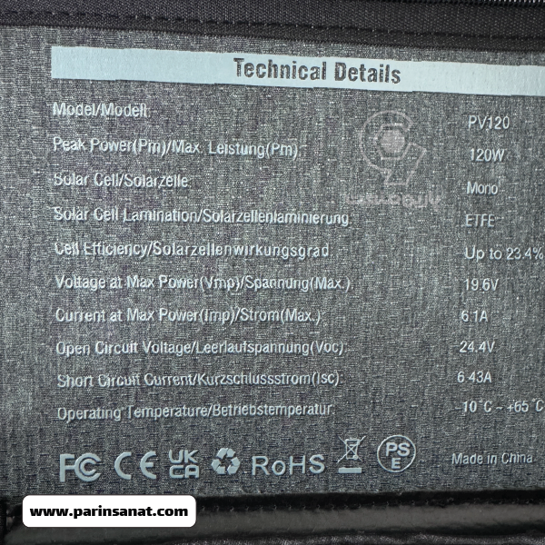 از نظر ویژگیها، این پنل خورشیدی به سلولهای مونوکریستال با کیفیت بالا مجهز شده که دوام و راندمان بالایی را تضمین میکنند. ولتاژ بیشینه توان 19.6 ولت و جریان 6.1 آمپر، شارژ بهینه و سریع پاور استیشنها را امکانپذیر میسازد. ولتاژ مدار باز 24.4 ولت و جریان مدار کوتاه 6.43 آمپر، نشاندهنده پایداری الکتریکی پنل در شرایط مختلف است. طراحی مهندسیشده پنل باعث افزایش جذب نور حتی در شرایط نوری متوسط میشود. مقاومت مناسب در برابر تغییرات دمایی، استفاده در فضای باز را بدون افت عملکرد ممکن میسازد. کیفیت ساخت استاندارد و برند معتبر بلوتی، اطمینان خاطر بیشتری در استفاده طولانیمدت ایجاد میکند.