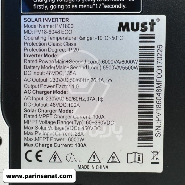 مشخصات فنی سانورتر MUST مدل PV18-6048 ECO