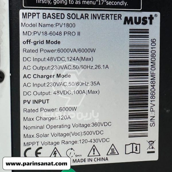 سانورتر MUST با توان 6 کیلووات یک گزینهی قدرتمند و قابلاعتماد برای سیستمهای خورشیدی خانگی و نیمهصنعتی است. این دستگاه برای تأمین برق پایدار در خانهها، ویلاها، فروشگاهها و مکانهایی که نیاز به انرژی بیوقفه دارند بهکار میرود. همچنین برای راهاندازی تجهیزات برقی حساس مثل دوربینهای مدار بسته، سیستمهای روشنایی و لوازم الکترونیکی ایدهآل است و در فضاهایی که افت ولتاژ یا قطعی برق وجود دارد عملکردی کاملاً مطمئن ارائه میدهد. از طرفی، با قابلیت اتصال به پنل خورشیدی و باتری، انتخابی مناسب برای پروژههای مستقل از شبکه و سیستمهای هیبریدی محسوب میشود.این مدل دارای شارژ کنترلر MPPT با راندمان بالا بوده و حداکثر توان برداشت از پنلها را تضمین میکند. صفحهنمایش هوشمند LCD امکان تنظیم و نظارت کامل بر وضعیت دستگاه را فراهم میسازد. موج خروجی شبهسینوسی پیشرفته باعث سازگاری عالی با اغلب تجهیزات برقی میشود و حفاظتهای چندلایه مانند جلوگیری از اضافهبار، اتصال کوتاه و نوسان ولتاژ، امنیت بیشتری برای سیستم فراهم میکند. همچنین طراحی فشرده و نصب آسان آن، استفاده در فضاهای مختلف را بسیار ساده ساخته است.