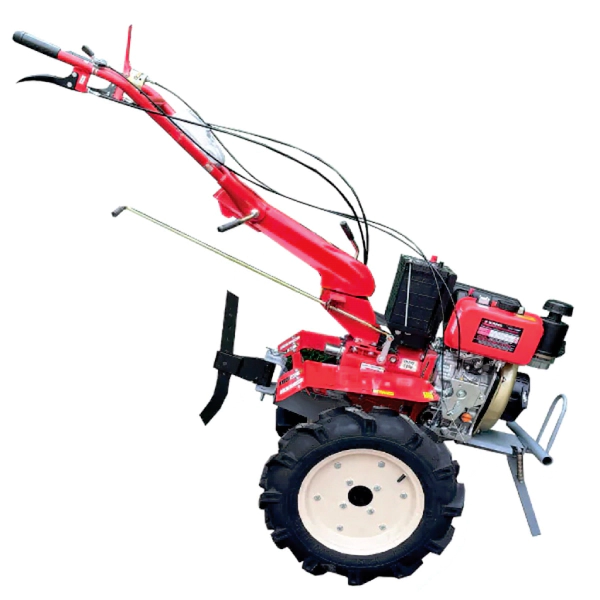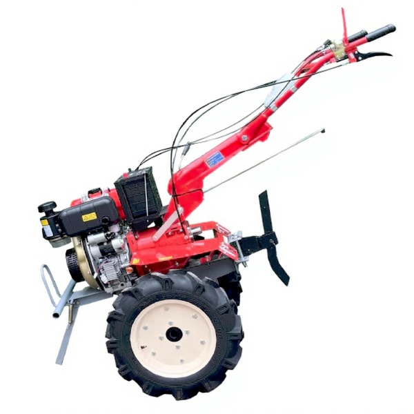 روشن کردن این تیلر کولتیواتور دیزلی به دو صورت هندلی و استارت الکتریکی امکانپذیر است و به کمک باطری تعبیه شده، استارت آسان و سریع را فراهم میکند. موتور تک سیلندر این تیلر دارای کلاچ تک صفحهای بوده و فیلتر روغن تعبیه شده مانع از ورود گرد و غبار به سیستم موتور میشود و دوام قطعات را افزایش میدهد. عرض شخمزنی این مدل بین ۷۵ تا ۱۱۰ سانتیمتر و عمق شخمزنی آن بین ۱۵ تا 30 سانتیمتر قابل تنظیم است. گیربکس مستحکم با دو دنده جلو و یک دنده عقب نیرو را به چرخها و تیغههای ۳۲ عددی روی محور ۸ ردیفه منتقل میکند. سایز تایر ۵۰۰×۱۲ با آج بلند و وزن دستگاه ۱۳۰ کیلوگرم، تعادل و ثبات بالایی هنگام کار فراهم میآورد. این تیلر مصرف سوخت پایینی دارد و نویز و آلودگی کمی تولید میکند. این تیلر دیزلی قابلیت نصب ادواتی مانند گاوآهن و نهرکن را دارد و برای خاکورزی ثانویه در مناطق خشک و کمآب مناسب است. این دستگاه ترکیبی از دوام، قدرت و کارایی بالا در ادوات کشاورزی است و انتخابی مطمئن برای کشاورزان و باغداران به شمار میرود.