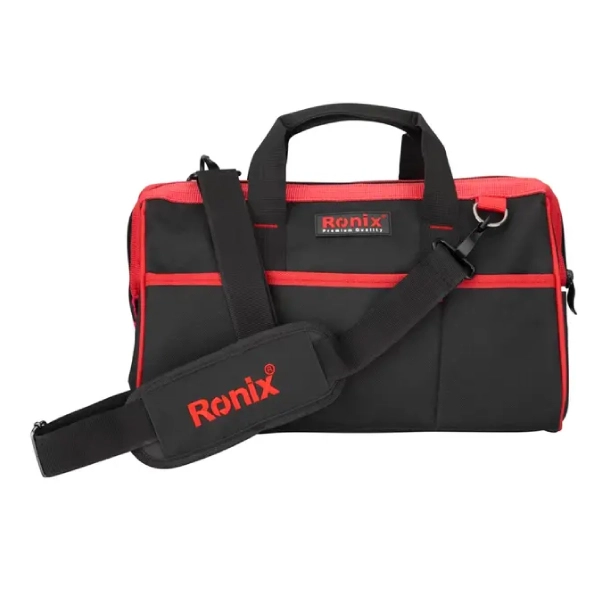 کیف ابزار رونیکس مدل RH-9113 یکی از پرفروشترین مدل های تجهیزات خانگی و صنعتی سری “Median” رونیکس است که تعادل دقیقی میان “ظرفیت” و “قابلیت حمل” برقرار کرده است. برخلاف جعبههای فلزی سنگین، این کیف با وزن سبک خود، فشار حمل و نقل را کاهش میدهد. رونیکس در ساخت این کیف از پارچه برزنت دو لایه استفاده کرده است. این ویژگی باعث میشود تا نوک تیز ابزارهایی مثل پیچگوشتی یا انبردست و متعلقات ابزار باعث سوراخ شدن بدنه کیف نشود. همچنین کفی کیف تقویت شده تا در صورت قرارگیری روی سطوح خیس یا روغنی کارگاه، رطوبت به داخل نفوذ نکند. وجود جیبهای کانگورویی در بیرون کیف برای دسترسی سریع به ابزارهای پرکاربرد (مثل متر، چسب برق یا کاتر) و جیبهای داخلی برای تفکیک ابزارهای ریز، نظمدهی را بسیار ساده کرده است. زیپ اصلی نیز از نوع صنعتی انتخاب شده تا در باز و بسته کردنهای مکرر دچار خرابی نشود.