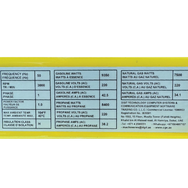- ساعت کاری مدام در حالت بنزینی با %۵۰ توان: ۱۱.۵ ساعت